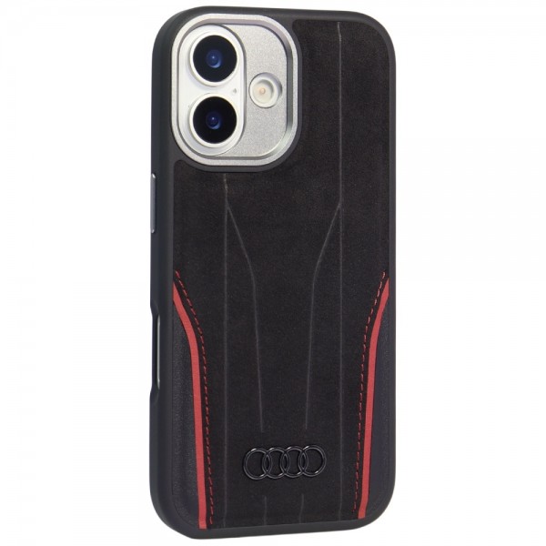 Audi iPhone 17 Hülle Case Cover Echtleder MagSafe R8 Schwarz Rot. Perfektes Erscheinungsbild. Sportlicher Charakter. Elite und Luxus. Jedes dieser Merkmale ist in fast jedem Produkt des deutschen Elite-Automobilgiganten Audi zu finden. Die Echtlederkollektion ist eine perfekte Kombination aus edlem Erscheinungsbild, hervorragenden Schutzparametern und modernsten Technologien. Betonen Sie Ihren einzigartigen Stil und entdecken Sie eine neue Dimension des Schutzes für Ihr iPhone. Die Audi R8 Echtleder-Serie ist für alle gedacht, die sportliche Eleganz mit höchster Handwerkskunst verbinden möchten. Die Hülle wurde mit Liebe zum Detail aus Naturleder und luxuriösem Alcantara® gefertigt. Das schwarze Finish mit roten Nähten unterstreicht den dynamischen Charakter der R8-Serie und verleiht dem Accessoire einen unverwechselbaren Stil.