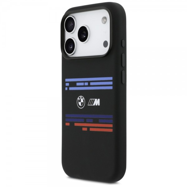 BMW iPhone 17 Pro Hülle Case M Silikon Horizontal Line MagSafe Schwarz