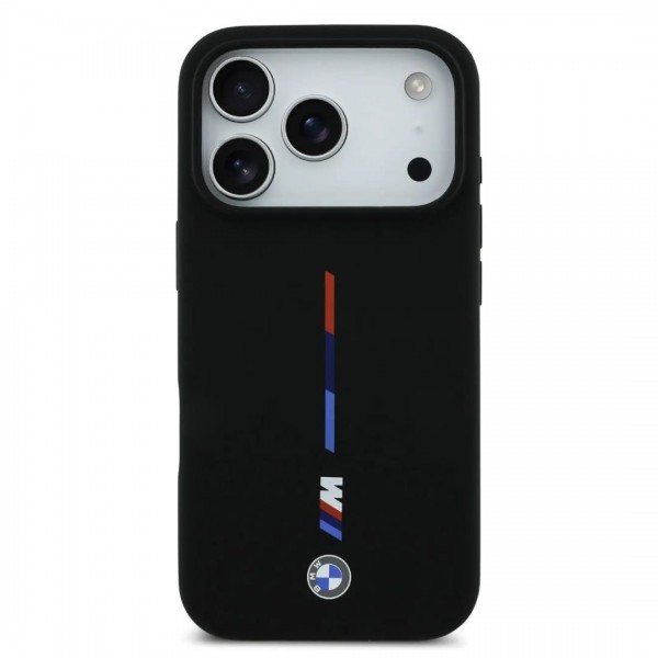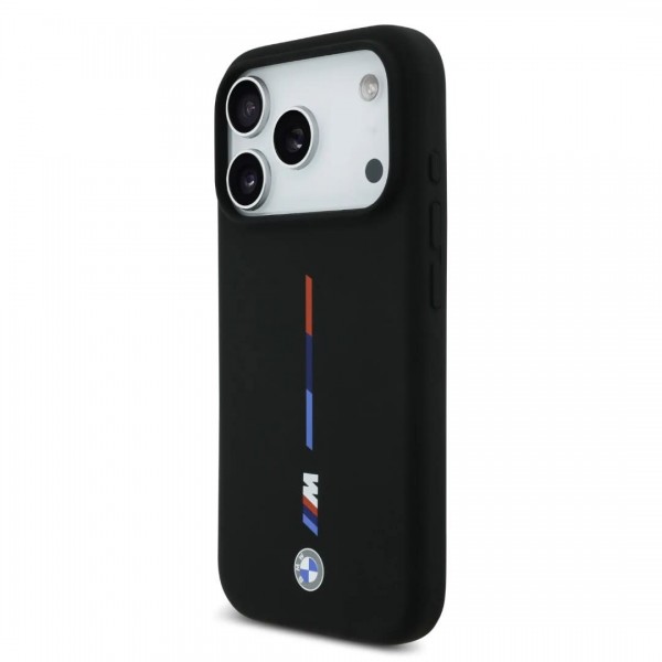 BMW iPhone 17 Pro Max Hülle Case MagSafe Silikon M Tricolor Schwarz. Die Innenseite der Hüllen ist mit einer weichen Mikrofaser ausgekleidet, die das Gerät stabilisiert und für Sicherheit gegen versehentliches Verrutschen sorgt. Eine stilvolle und elegante Hülle aus langlebigen, hochwertigen Materialien ist ein Produkt für Menschen, die nicht nur ein elegantes Aussehen, sondern auch den Schutz ihres Telefons schätzen. Die Kollektion besticht durch ihren minimalistischen Stil und ihre Zweckmäßigkeit, sie greift auf BMW Heritage und Markenmerkmale zurück – Luxusprodukte werden präsentiert, bis ins Detail verfeinert und von höchster Qualität. Die Ästhetik des Produkts fällt auf und kann als sehr attraktiv wahrgenommen werden.