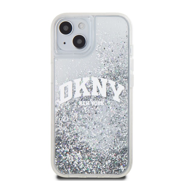 Schnellsuche DKNY iPhone 15 Hülle Case Liquid Glitter Arch Logo Silber