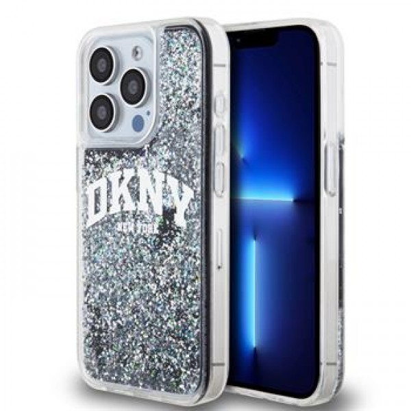 DKNY iPhone 15 Pro Hülle Case Liquid Glitter Arch Logo Schwarz