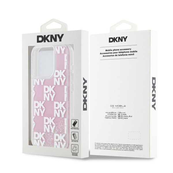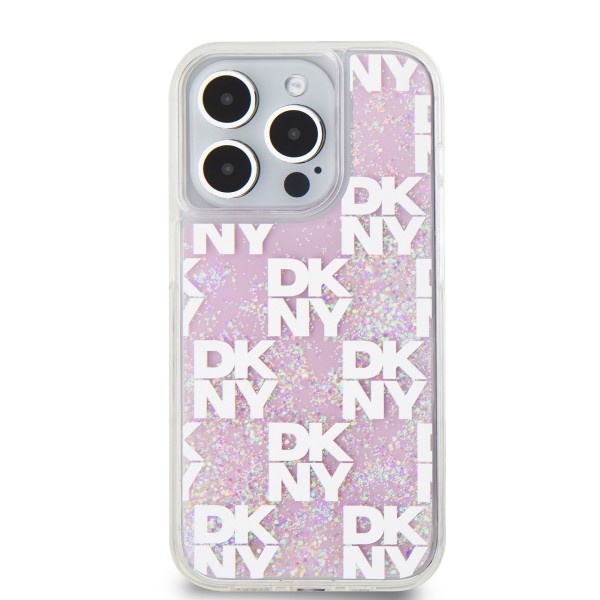 DKNY iPhone 15 Pro Hülle Case Liquid Glitter Checkered Pattern Rosa