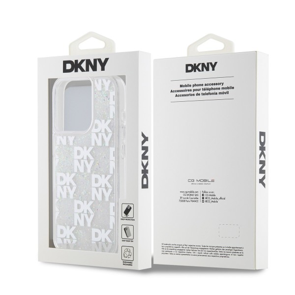 DKNY iPhone 15 Pro Hülle Case Liquid Glitter Checkered Pattern Silber. DKNY Liquid Glitter Checkered Pattern Markenhülle – modischer und stylischer Schutz für Ihr Handy!