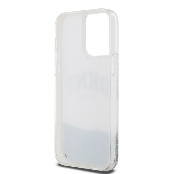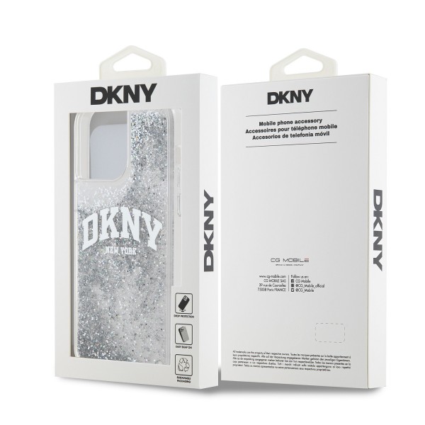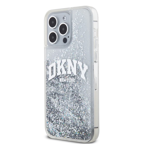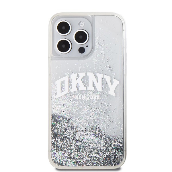 DKNY iPhone 15 Pro Max Hülle Case Liquid Glitter Arch Logo Silber
