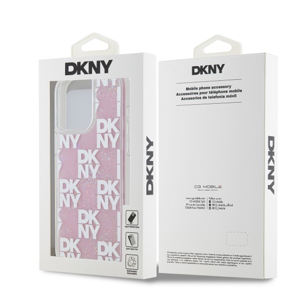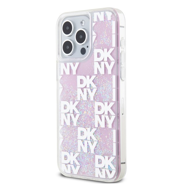 DKNY iPhone 15 Pro Max Hülle Case Liquid Glitter Checkered Pattern Rosa