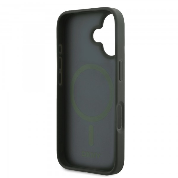 DKNY iPhone 16 Magsafe Hülle Case Leather Grid Grün