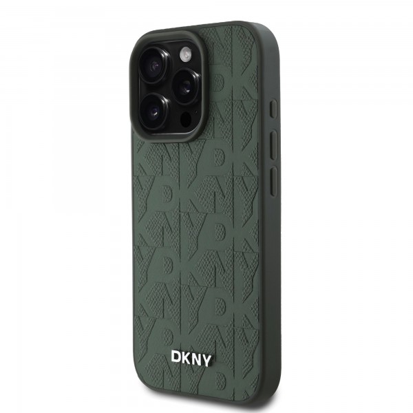 DKNY iPhone 16 Pro Max Magsafe Hülle Case Leather Grid Grün
