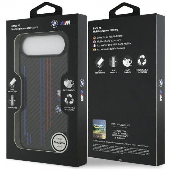BMW iPhone 17 Air Case M Kevlar Lines Carbon MagSafe Black. The exclusive BMW case from the M Kevlar Lines & Logo MagSafe collection is a high-quality cover, endorsed by one of the world's most popular automotive brands.