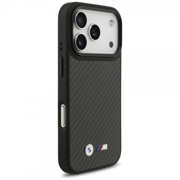 BMW iPhone 17 Pro Case M Kevlar Carbon MagSafe Black. The exclusive BMW case from the M Kevlar & Logo MagSafe collection is a high-quality cover, endorsed by one of the world's most popular automotive brands.