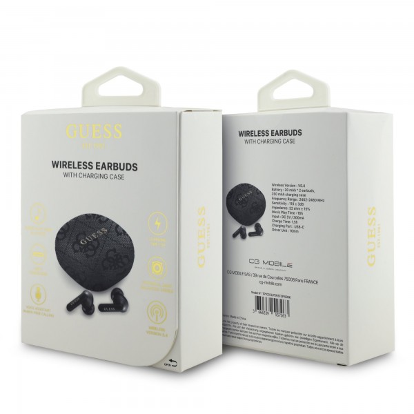 Guess Bluetooth In-Ear Headphones ENC TWS 4G Script Logo Black. Wireless Headphones Guess PU 4G Script Logo ENC TWS