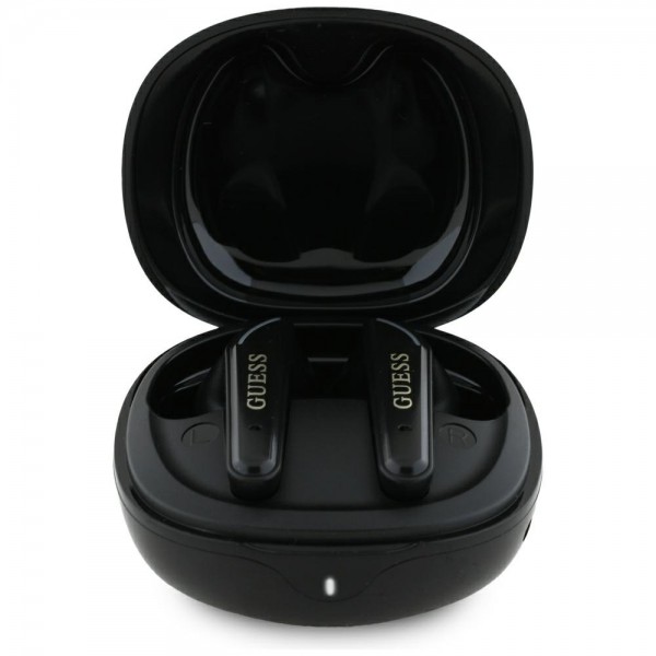 Guess Bluetooth In-Ear TWS Electroplated Black Headphones. These wireless earbuds with the elongated, metallic printed logo impress with excellent sound, elegant design, and functionality that meets your expectations.