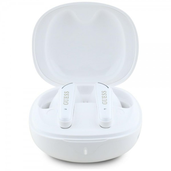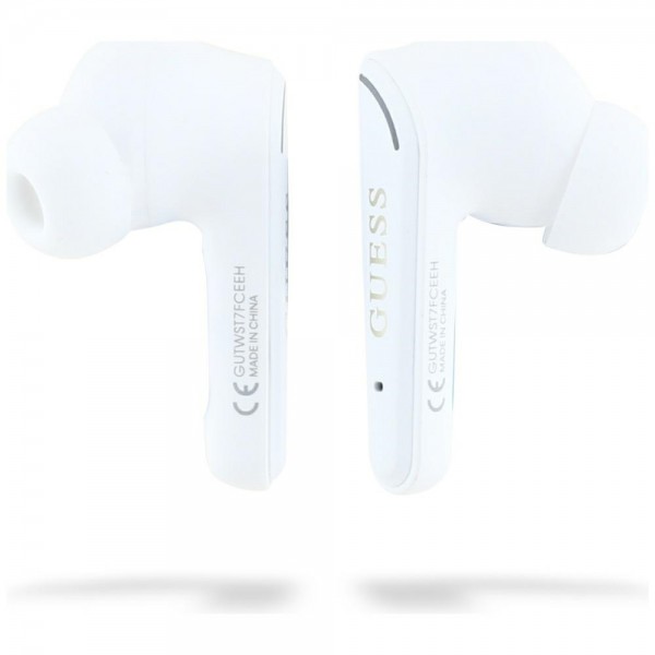 Guess Bluetooth In-Ear TWS Electroplated White Headphones. These wireless earbuds with the elongated, metallic printed logo impress with excellent sound, elegant design, and functionality that meets your expectations.