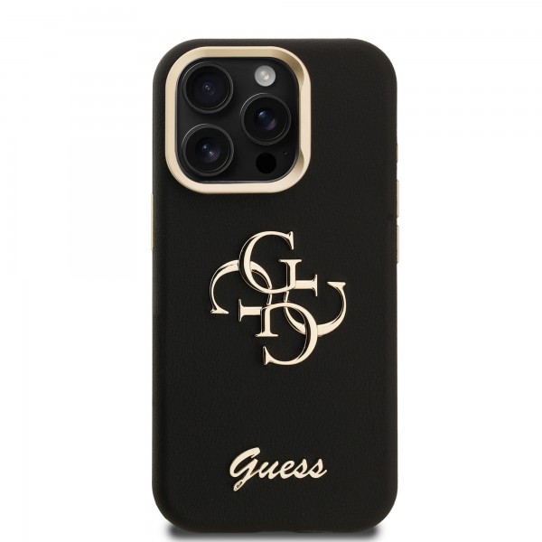 Guess iPhone 15 Pro Case Grained 4G Logo Stand Camera Frame Black. The Guess PU Grained 4G Logo Stand Camera Frame back cover is the perfect accessory for your smartphone and your outfit, combining functionality and style. Decorative elements of this case include integrated button covers and a frame around the camera lens in the same golden color – this unique combination makes the case not only very elegant but also extremely fashionable.
