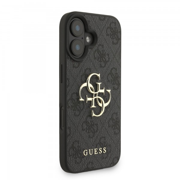 Guess iPhone 16 Case Big 4G Metal Logo Strap Black. The premium "Guess PU 4G Metal Logo Strap" back cover impresses with an elegant, signature 4G pattern featuring the GUESS logo.