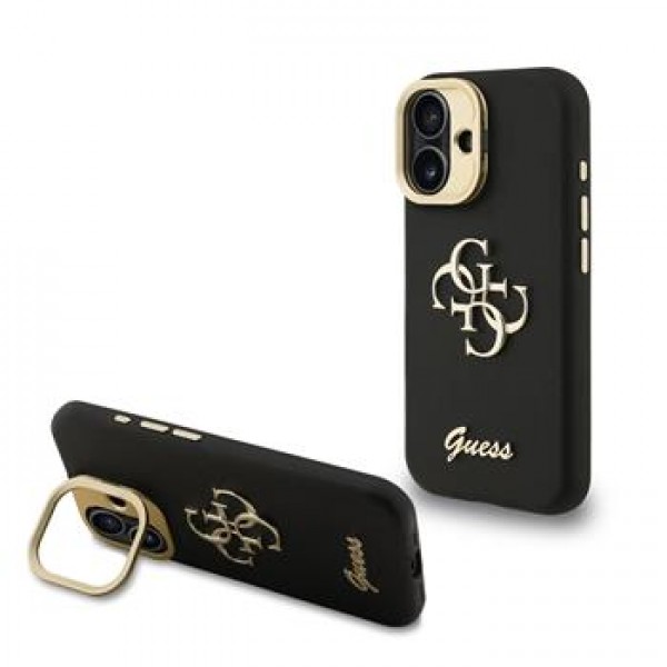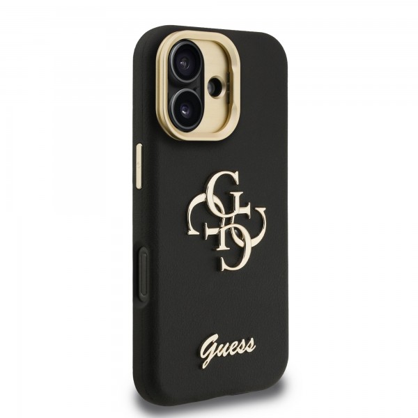 Tags: Guess iPhone 16 Case Grained 4G Logo Stand Camera Frame Black