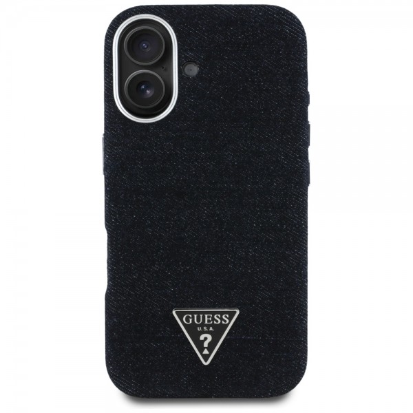 Guess iPhone 16 Case MagSafe Denim Triangle Logo Black