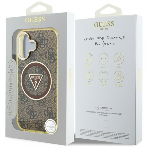 Guess iPhone 16 Case Metal Glitter 4G Circle MagSafe Brown. The IML Metal Glitter 4G Circle Triangle MagSafe protective cases combine exceptional functionality with a stylish, unique design. This collection was developed for those who value not only the security of their smartphone but also its elegant appearance.