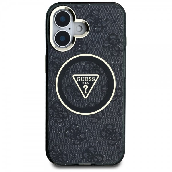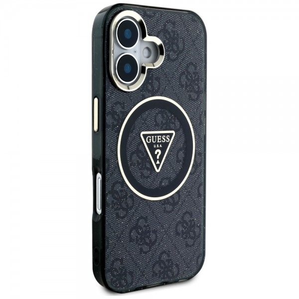 Guess iPhone 16 Case Metal Glitter 4G Circle MagSafe Black. The IML Metal Glitter 4G Circle Triangle MagSafe protective cases combine exceptional functionality with a stylish, unique design. This collection was developed for those who value not only the security of their smartphone but also its elegant appearance.