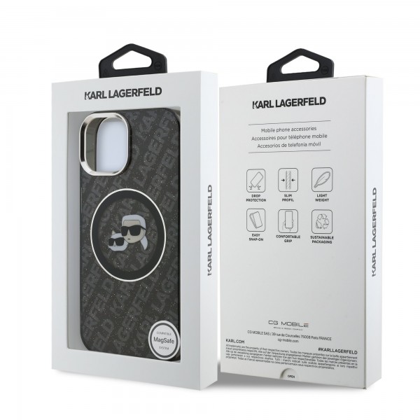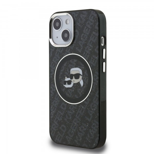 Karl Lagerfeld iPhone 15 Case Repeated Logo MagSafe Black. The Karl Lagerfeld IML Karl & Choupette Heads Repeated Logo MagSafe Back Cover is the perfect accessory for your smartphone and outfit, combining functionality and style.