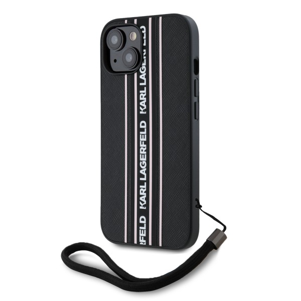 Karl Lagerfeld iPhone 15 Case Saffiano Stripe Strap Black