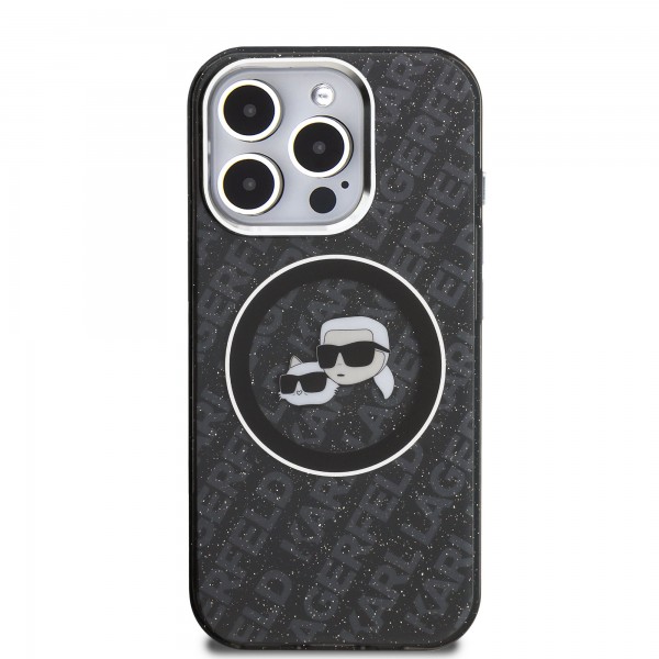 Karl Lagerfeld iPhone 15 Pro Case Repeated Logo MagSafe Black. The Karl Lagerfeld IML Karl & Choupette Heads Repeated Logo MagSafe Back Cover is the perfect accessory for your smartphone and outfit, combining functionality and style.