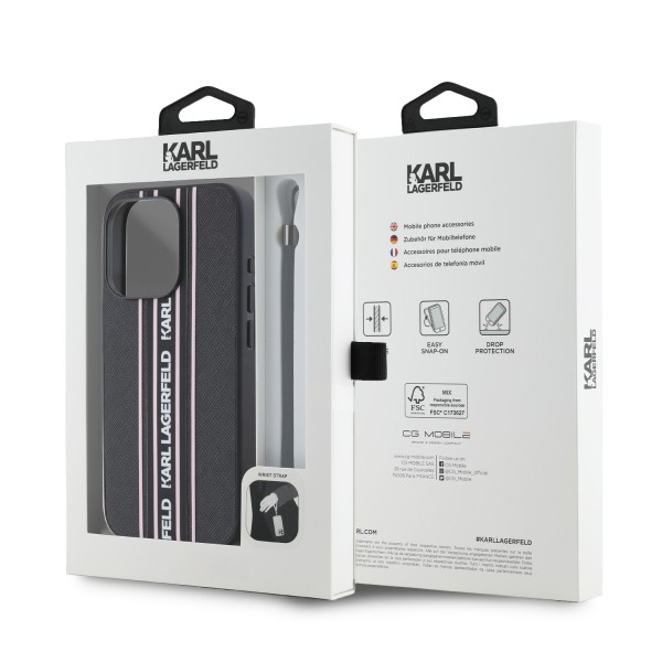 Karl Lagerfeld iPhone 15 Pro Max Case Saffiano Stripe Strap Black