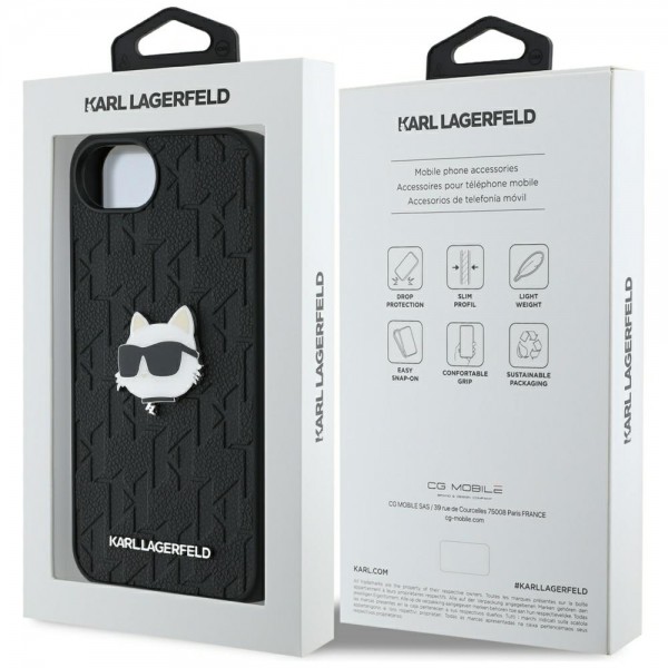 Karl Lagerfeld iPhone 16e Case Choupette Head Pin Black. The Monogram Choupette Head Pin series is the perfect solution for those who want to combine functionality and exceptional style for their smartphone. This unique collection offers reliable protection and not only ensures the security of the device but also lends it an unparalleled character and attracts attention with its unique design.