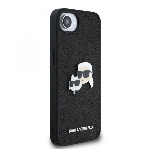 Karl Lagerfeld iPhone 16e Case Fixed Glitter Metal K&CH Black