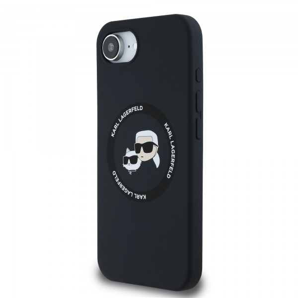 Karl Lagerfeld iPhone 16e Case MagSafe K & CH Heads Silicone Black