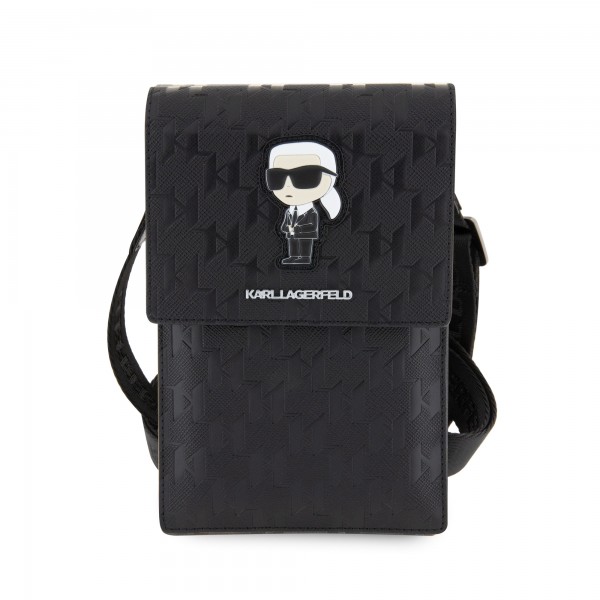 Karl Lagerfeld Saffiano Ikonik Shoulder Bag in Black. The Karl Lagerfeld Saffiano Monogram Ikonik NFT Phone Case is the perfect, stylish shoulder bag.