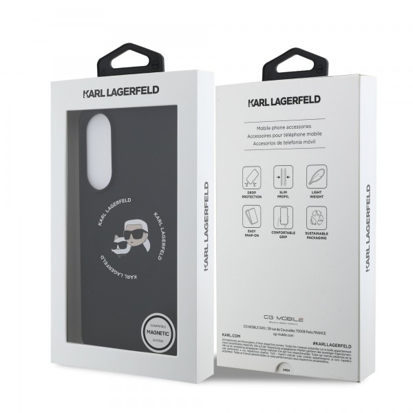 Karl Lagerfeld Samsung S25 Edge Case Silicone Double Heads MagSafe Black. The Karl Lagerfeld Liquid Silicone Double Heads back cover for your smartphone is the perfect accessory for those who love style and functionality.