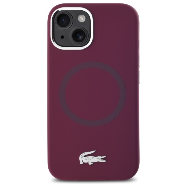 Tags: Lacoste iPhone 15 Case, Silicone with Metal Croc, MagSafe, Bordeaux Red