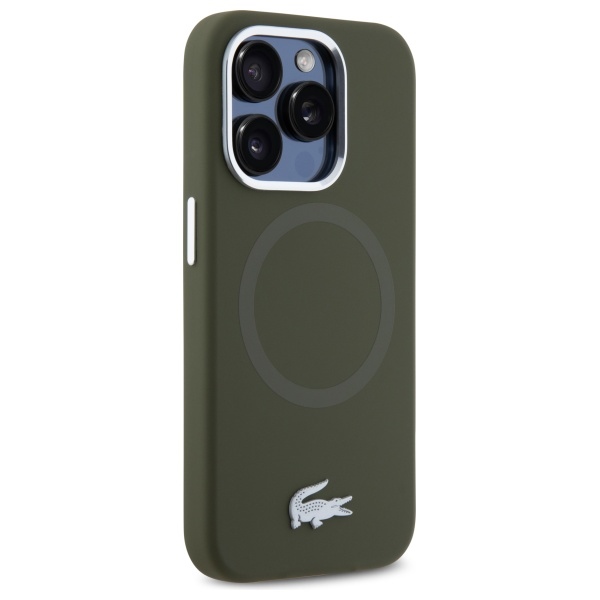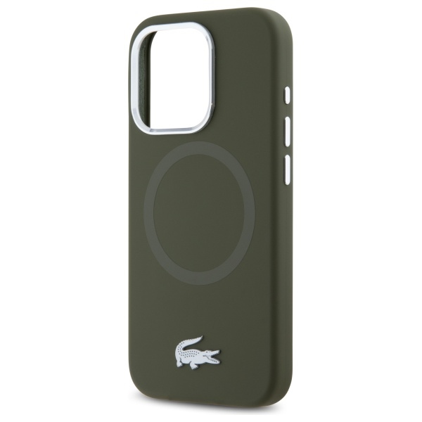 Tags: Lacoste iPhone 15 Pro Case, Silicone with Metal Croc and MagSafe Logo, Khaki