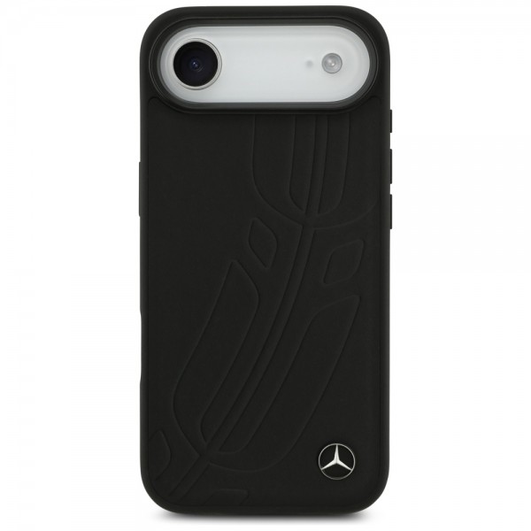 Mercedes iPhone 17 Air MagSafe Case Genuine Leather Case Leaf Black. The exclusive Mercedes-Benz case from the Leather Large Laurel Leave MagSafe collection is a case of exceptional quality, signed by one of the world's most popular automotive brands. It is the perfect choice for all owners of devices with MagSafe technology.