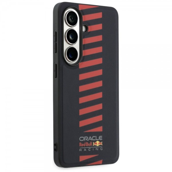 The exclusive Oracle Red Bull Racing protective case combines sporty character with a dynamic look. The back is covered in synthetic leather, and the entire case is made of high-quality TPU and PC, guaranteeing durability and resilience in everyday use. The back is adorned with a red pattern reminiscent of racing motifs, as well as the Oracle Red Bull Racing logo, emphasizing the product's exclusivity and authenticity.