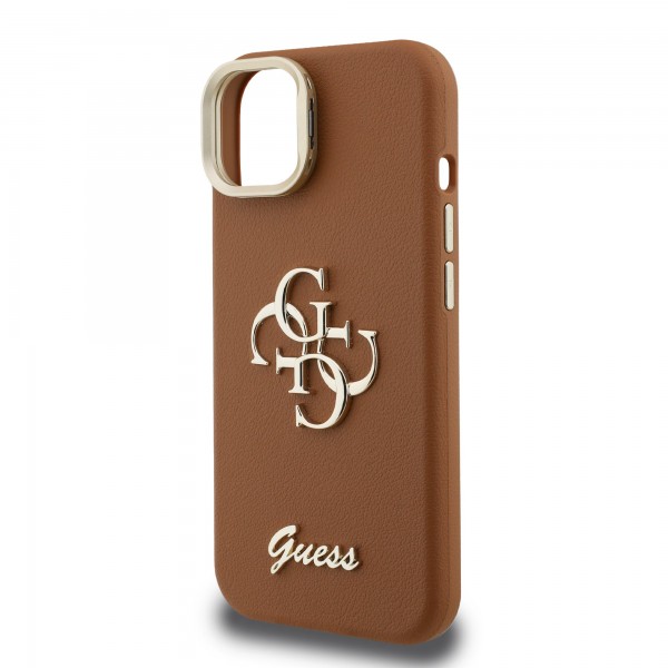Schnellsuche Guess iPhone 13 Hülle Case Grained 4G Logo Stand Camera Frame Braun