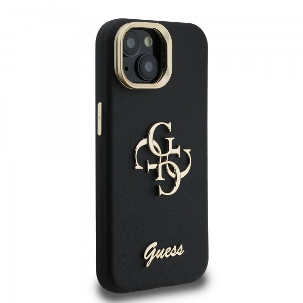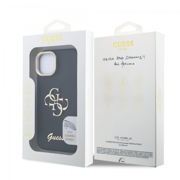 Schnellsuche Guess iPhone 13 Hülle Case Grained 4G Logo Stand Camera Frame Schwarz