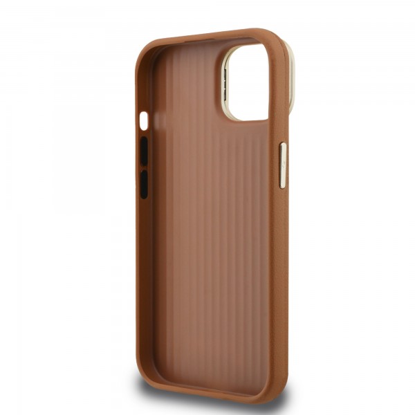 Guess iPhone 14 Hülle Case Grained 4G Logo Stand Camera Frame Braun