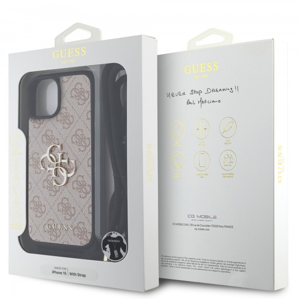 Schnellsuche Guess iPhone 15 Hülle Case 4G Metal Logo Crossbody Rosa Pink