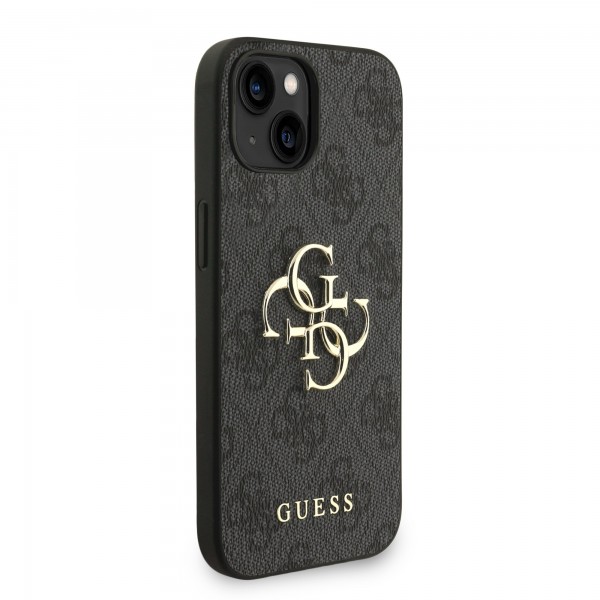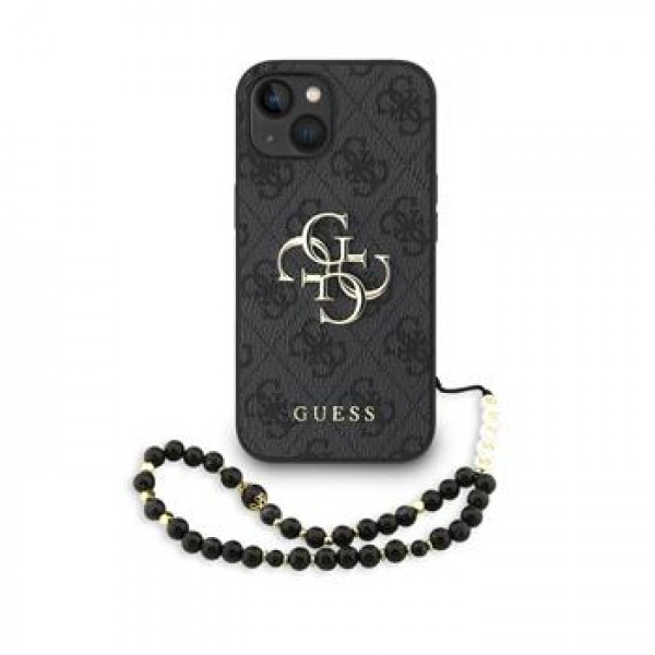Guess iPhone 15 Hülle Case Big 4G Metal Logo Strap Armband Black. Das Premium-Backcover „Guess PU 4G Metal Logo Strap“ besticht durch ein elegantes, charakteristisches 4G-Muster mit dem GUESS-Logo.