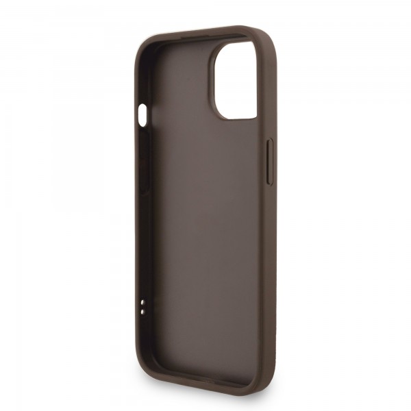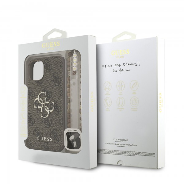 Guess iPhone 15 Hülle Case Big 4G Metal Logo Strap Armband Braun