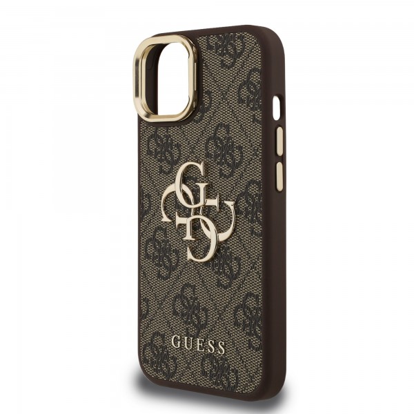 Schnellsuche Guess iPhone 15 Hülle Case Metal Stand Camera Frame 4G Braun