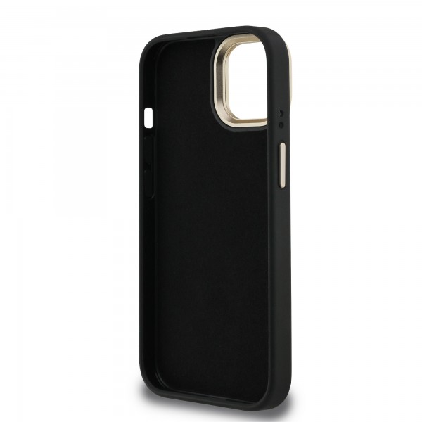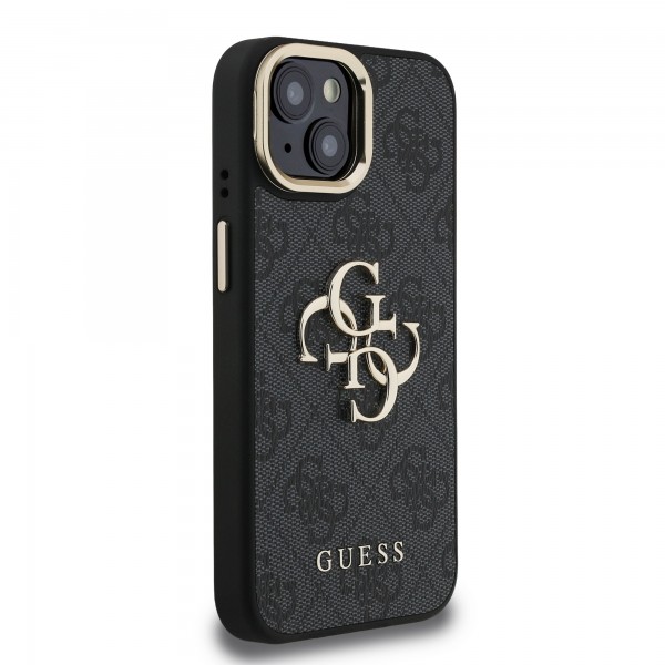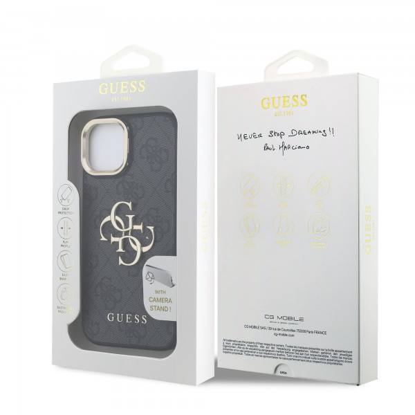 Guess iPhone 15 Hülle Case Metal Stand Camera Frame 4G Schwarz