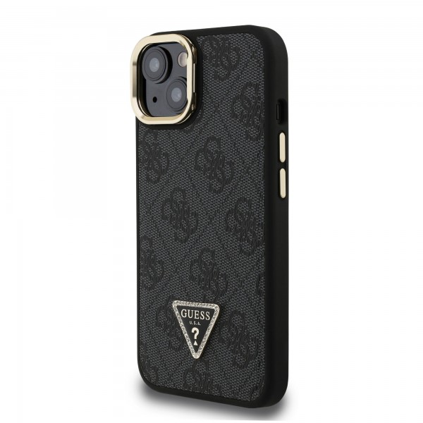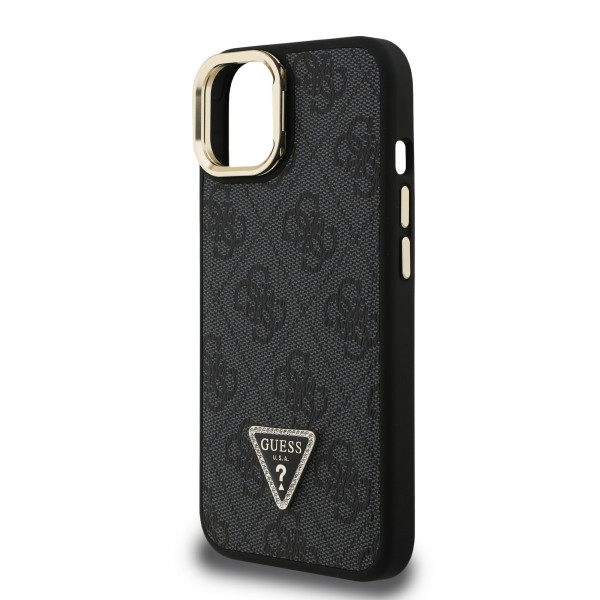 Guess iPhone 15 Hülle Case Stand Camera MagSafe Strass Logo Schwarz
