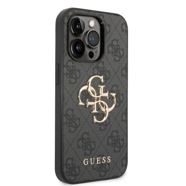 Guess iPhone 15 Pro Hülle Case 4G Logo Big Metal Grau