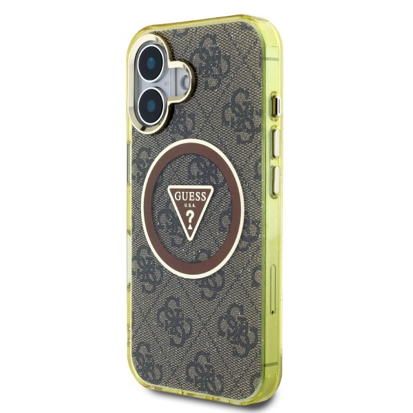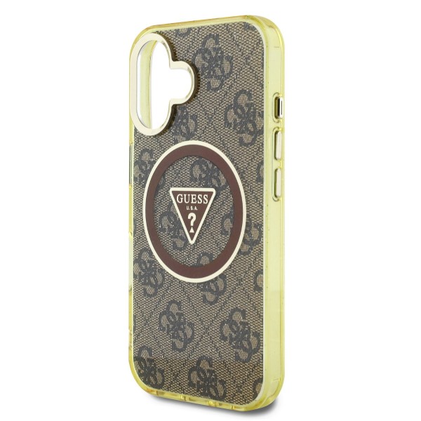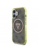 Guess iPhone 16 Hülle Case Cover MagSafe 4G Glitter Triangle Braun