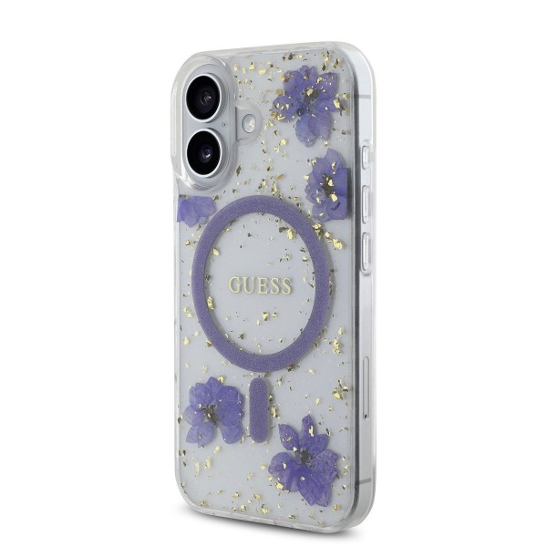 Guess iPhone 16 Hülle Case Cover Magsafe Resin Flowers Violett