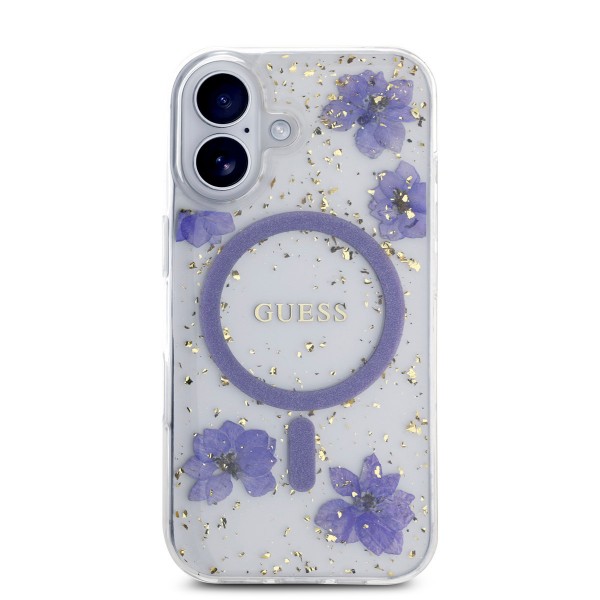 Schnellsuche Guess iPhone 16 Hülle Case Cover Magsafe Resin Flowers Violett