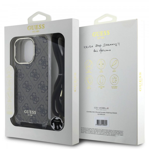 Schnellsuche Guess iPhone 16 Pro Hülle Case Crossbody Cord 4G Print Braun
