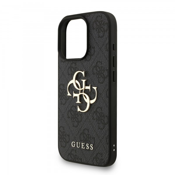 Guess iPhone 16 Pro Max Hülle Case Big 4G Metal Logo Strap Armband Black